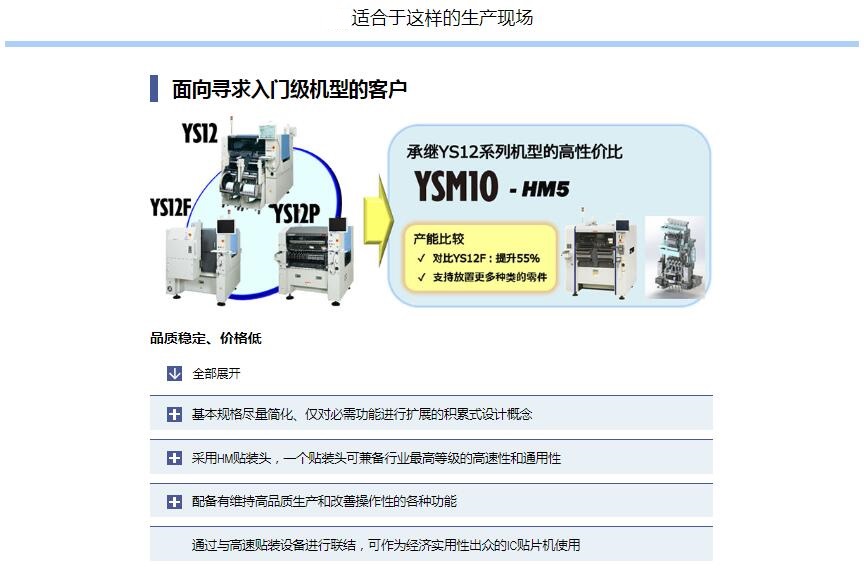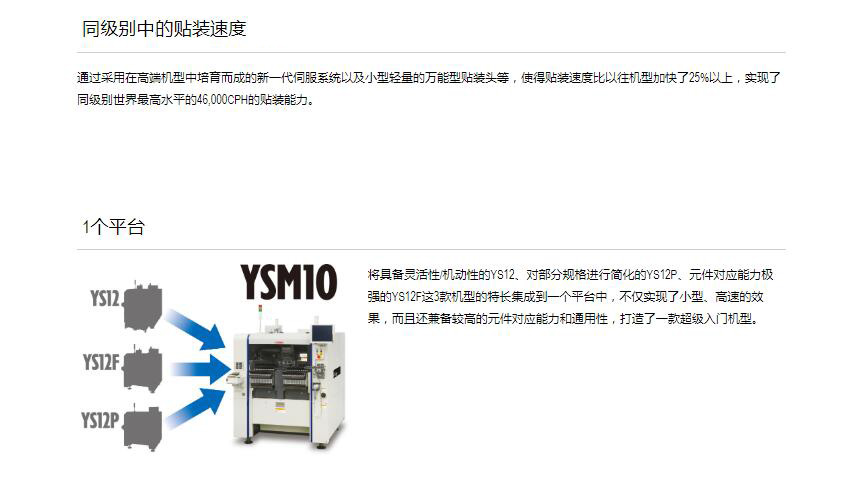 1.兼?zhèn)涓咚傩院屯ㄓ眯?、在同級別機(jī)型中實現(xiàn)更高水平貼裝能力的YSM系列入門級貼片機(jī)。