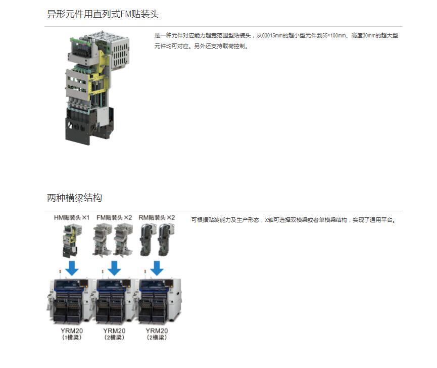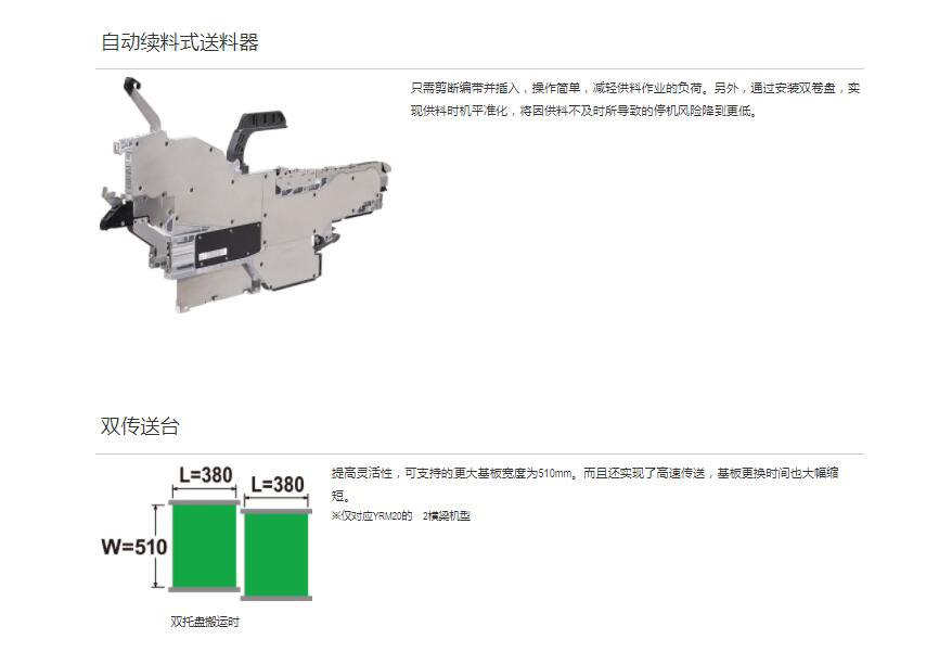 YRM20高效模塊貼片機 極 限改進“單一貼裝頭解決方案”,具有卓絕生產(chǎn)率和通用性的萬 能型貼片機1.融合Σ系列產(chǎn)品的技術(shù),實現(xiàn)卓絕的生產(chǎn)率.2.采用“單一貼裝頭解決方案”,廣泛對應各種生產(chǎn).3.標準配備可維持高品質(zhì)貼裝的各項功能.4.通過運用豐富的功能群,實現(xiàn)高效生產(chǎn).